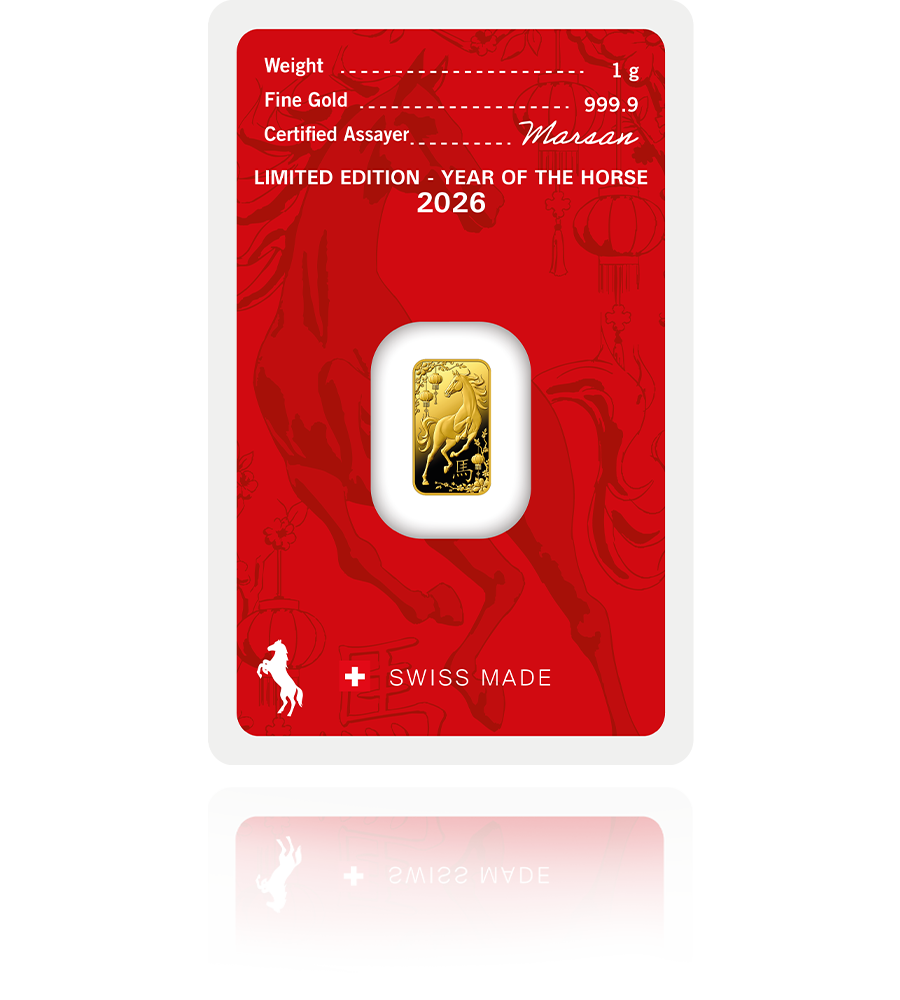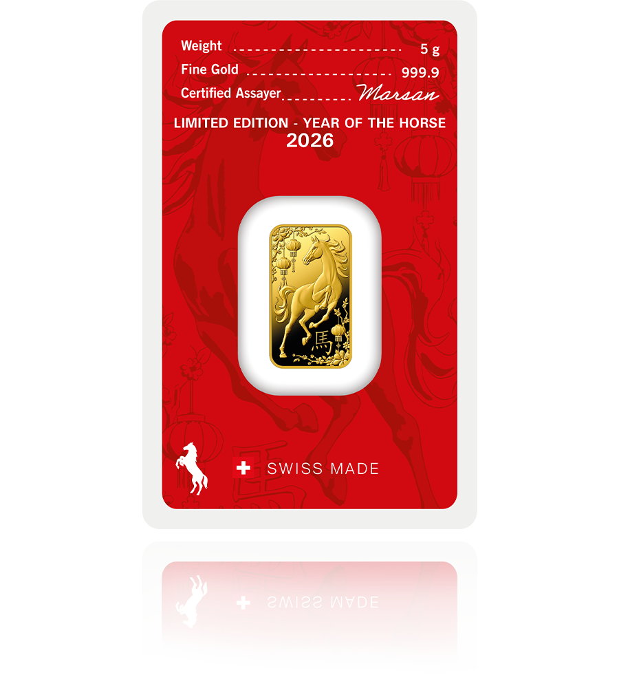 Omejena izdaja Leto konja 2026 švicarske kovnice Argor-Heraeus predstavlja ekskluziven zbirateljski in naložbeni kos, posvečen prihajajočemu letu po kitajskem zodiaku. Palico krasi natančno izdelan motiv konja – simbola moči, odločnosti in napredka – ustvarjen izključno za leto 2026. Vsak primerek je izdelan v strogo omejeni količini, individualno oštevilčen in opremljen s certifikatom pristnosti, kar dodatno poudarja njen zbirateljski značaj. Gre za prestižen kos za zbiratelje, premišljeno darilo ob pomembnih življenjskih mejnikih ter stabilno naložbo v enega najvarnejših hranilcev vrednosti.