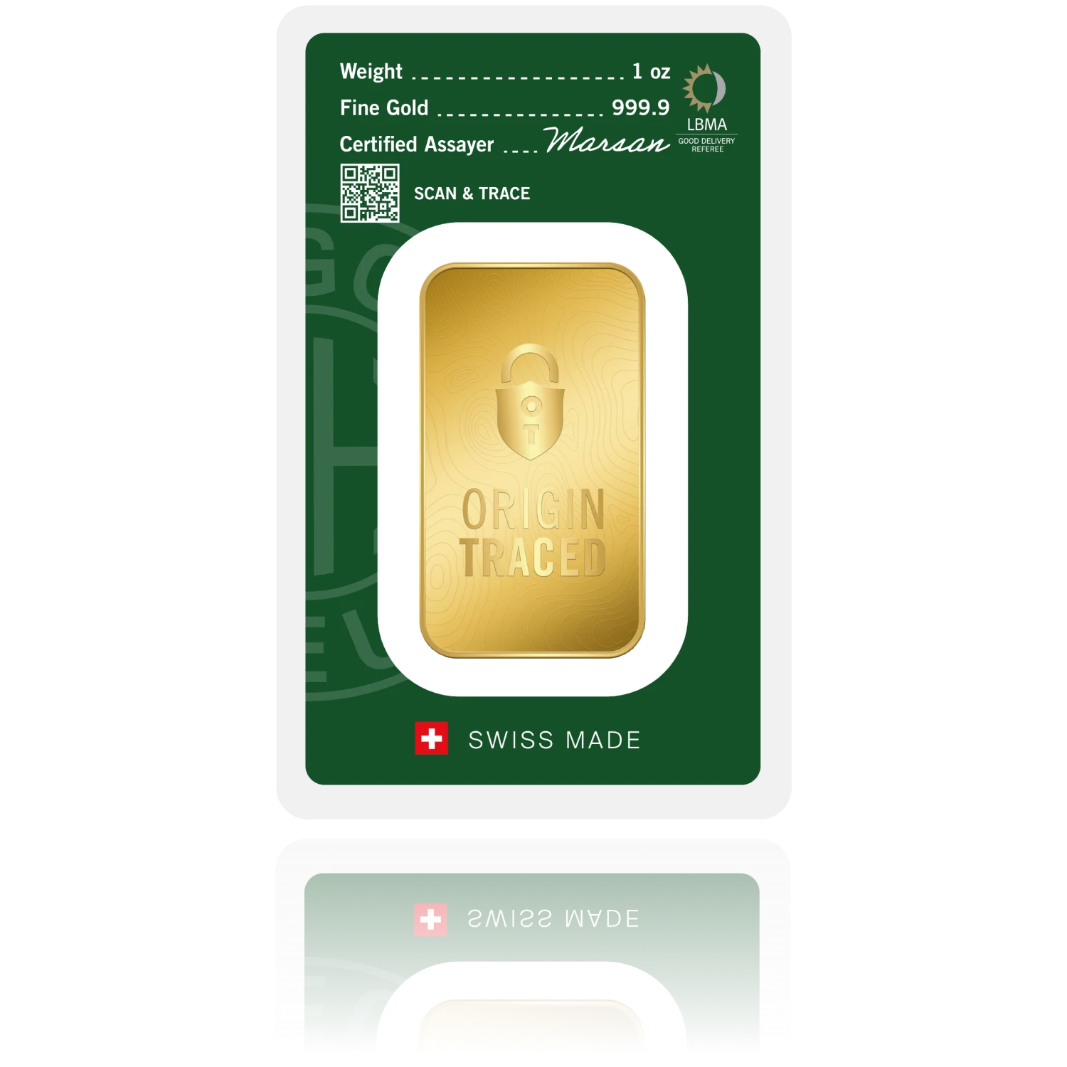 Origin Traced je del najnovejše ponudbe priznane kovnice Argor-Heraeus in predstavlja premišljeno naložbo v 999,9 fino zlato z zagotovljeno popolno sledljivostjo – od rudnika do trga. Zlato prihaja iz skrbno izbranih profesionalnih rudnikov, ki delujejo po najvišjih standardih odgovornega poslovanja, varnosti zaposlenih in varovanja okolja. Posebnost linije je možnost preverjanja izvora zlata in pristnosti palice prek uradne Argor-Heraeus aplikacije, kar vlagateljem zagotavlja popolno transparentnost in zaupanje v nakup. Gre za švicarski proizvod vrhunske kakovosti, zasnovan za vlagatelje in zbiratelje, ki želijo združiti varno naložbo, sledljiv izvor in trajnosten pristop. Na voljo v apoenih 1 oz, 1 kg, 400 oz.