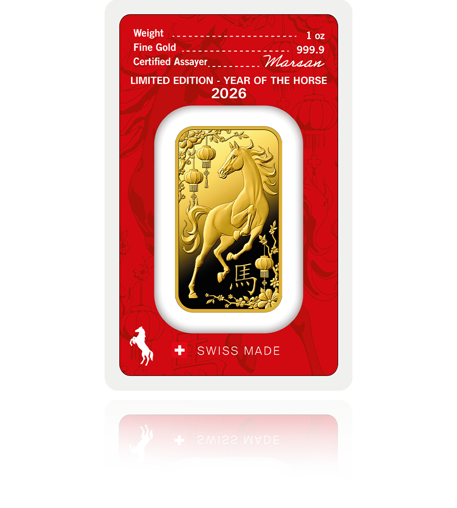 Omejena izdaja Leto konja 2026 švicarske kovnice Argor-Heraeus predstavlja ekskluziven zbirateljski in naložbeni kos, posvečen prihajajočemu letu po kitajskem zodiaku. Palico krasi natančno izdelan motiv konja – simbola moči, odločnosti in napredka – ustvarjen izključno za leto 2026. Vsak primerek je izdelan v strogo omejeni količini, individualno oštevilčen in opremljen s certifikatom pristnosti, kar dodatno poudarja njen zbirateljski značaj. Gre za prestižen kos za zbiratelje, premišljeno darilo ob pomembnih življenjskih mejnikih ter stabilno naložbo v enega najvarnejših hranilcev vrednosti.